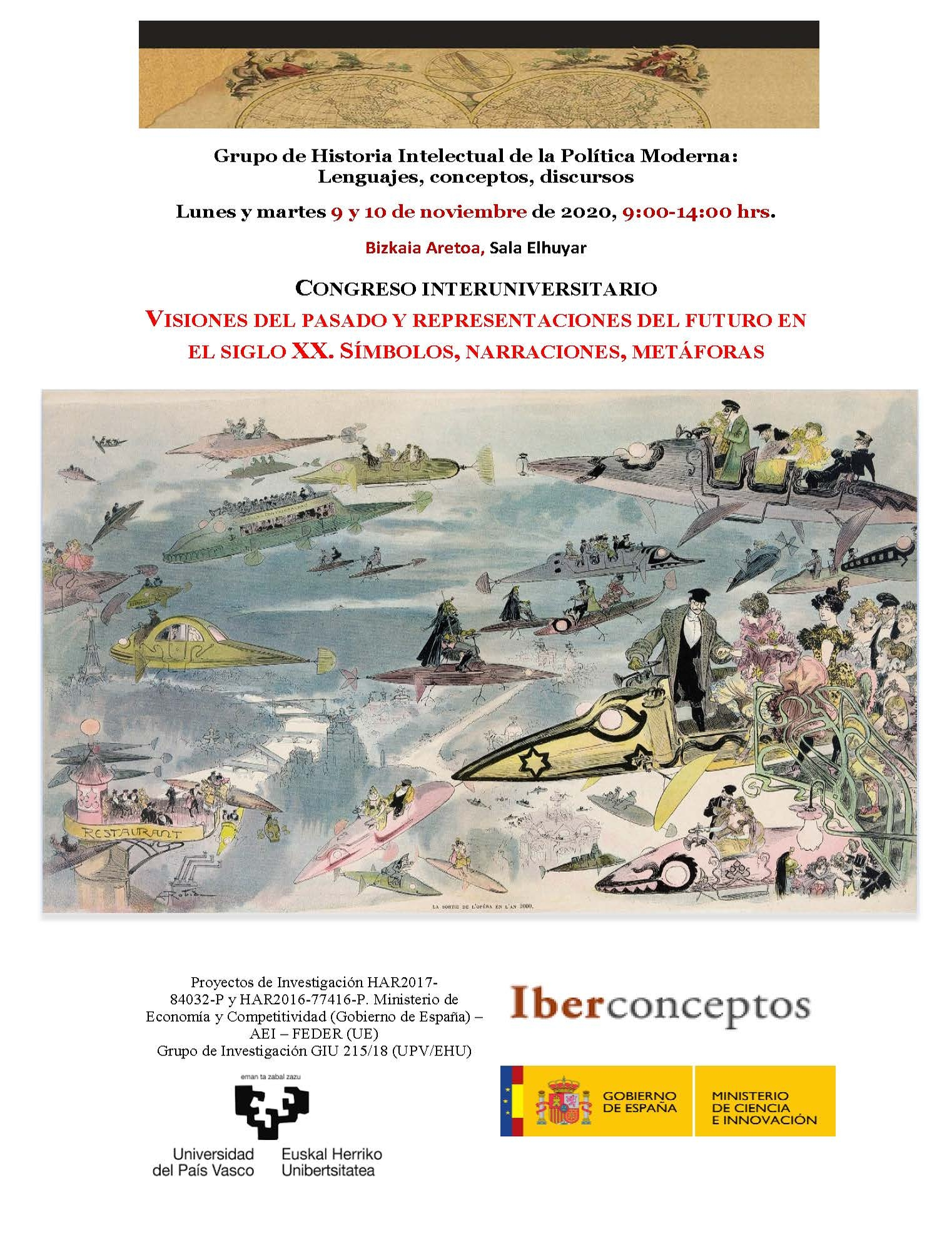 Los días 9 y 10 de noviembre de 2020 se celebró telemáticamente el coloquio "Visiones del pasado y representaciones del futuro en el siglo XX", organizado por el Grupo de Historia Intelectual de la Política Moderna (UPV), que dirige Javier Fernández Sebastián, con participación de varios miembros del proyecto de investigación Har-2016-77416-P.